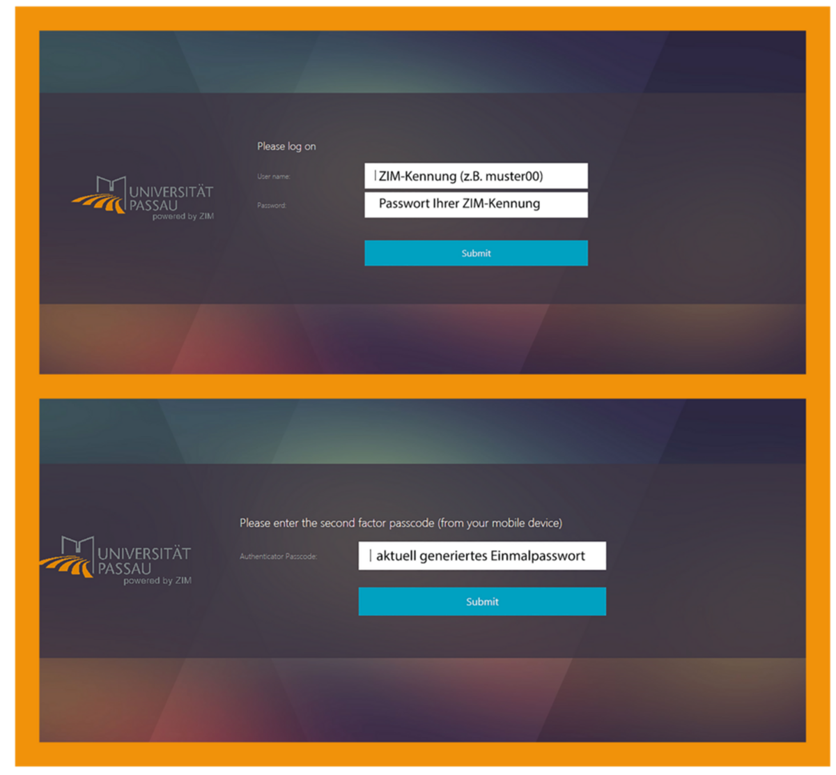 First, enter your ZIM ID and your password. You will then be asked to enter the current one-time password generated from the Google Authenticator app. Now you have access to your Android device via Citrix.