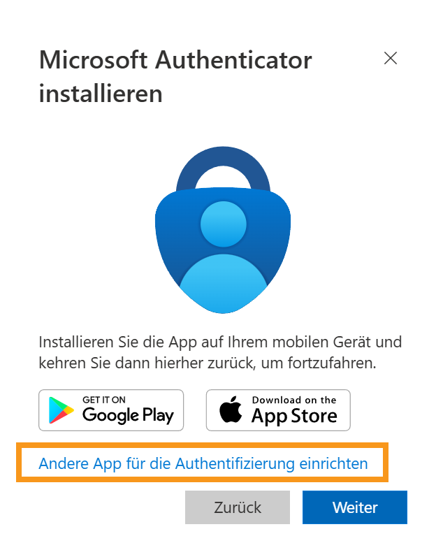 Klicken Sie auf "Andere App für die Authentifizierung einrichten".