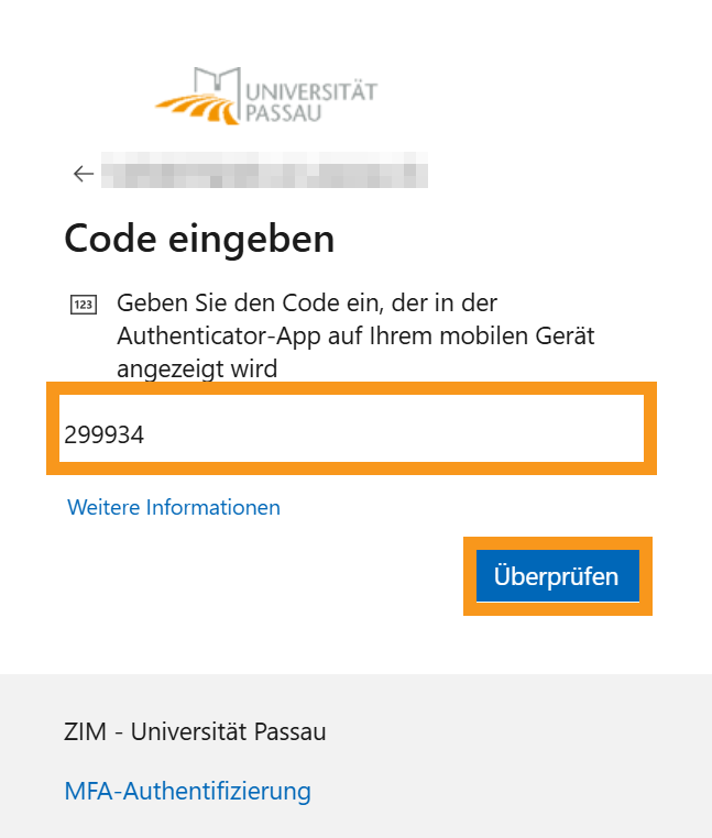 Danach können Sie die in der Authenticator-App generierten Einmalcodes als zweiten Faktor bei Anmeldungen verwenden.