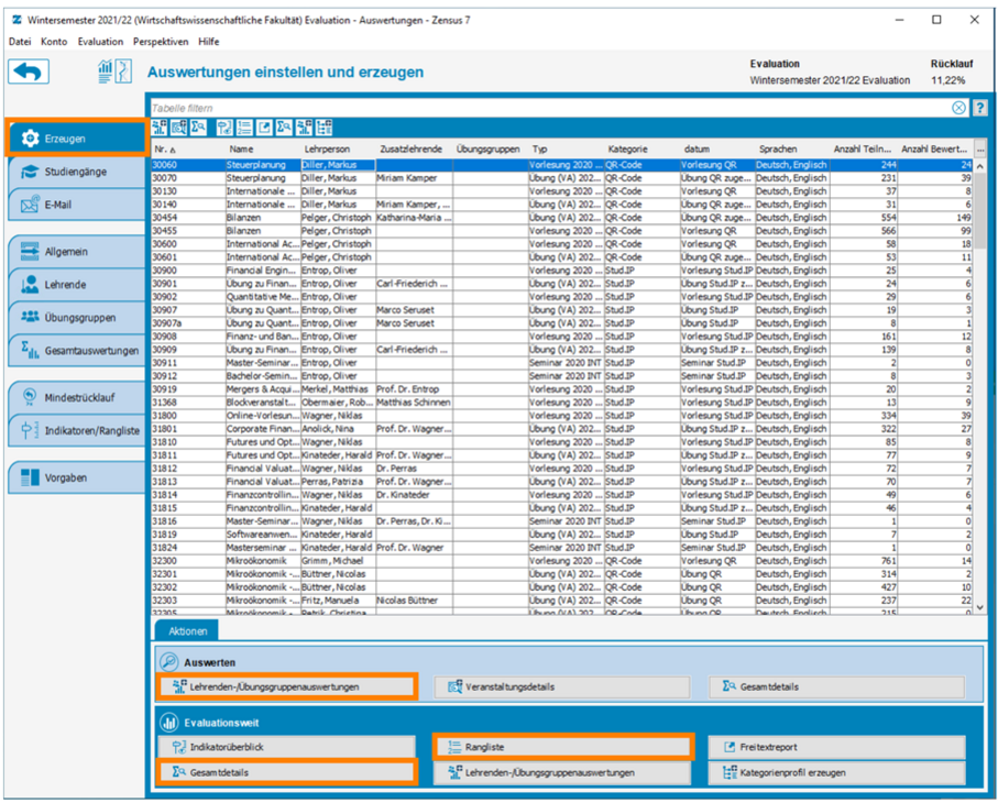 Darüber hinaus erhalten die Studiendekaninnen bzw. Studiendekane der Fakultät die vollständigen Evaluationsergebnisse.